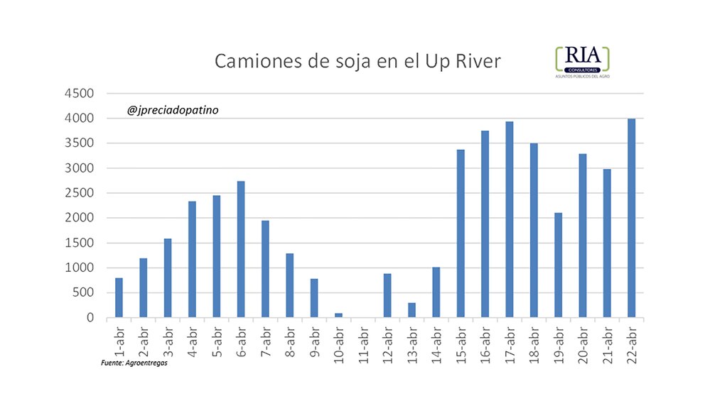 “En cuanto a la registración de exportaciones, hasta ayer estabamos 20% abajo del promedio para los embarques con fecha de inicio en abril. No es tanto como para que no se compense en lo que falta para terminar el mes”, concluyó, por otra parte, Preciado.