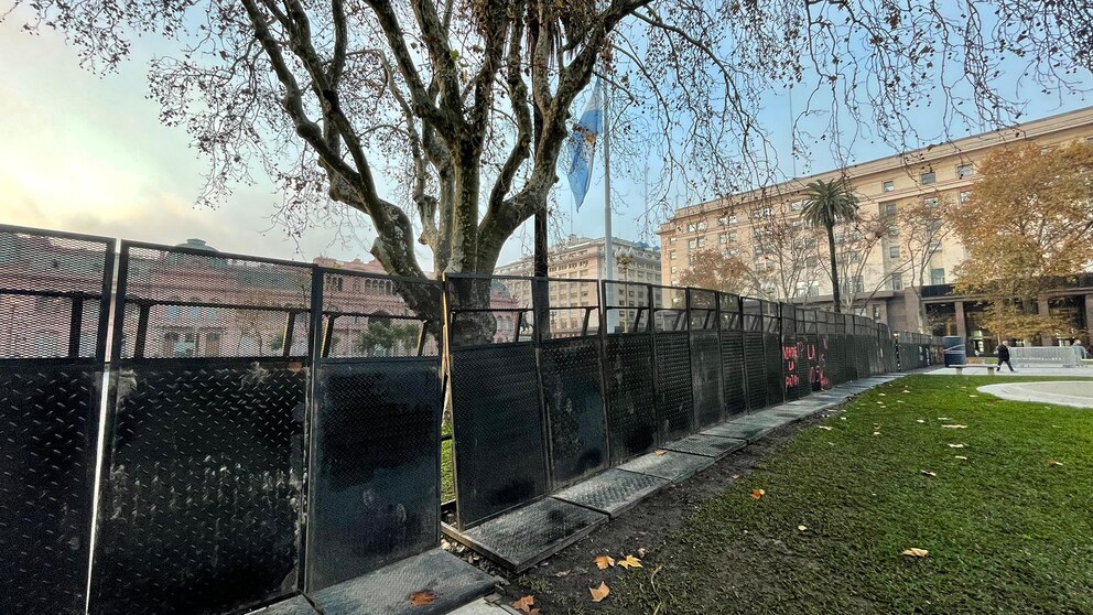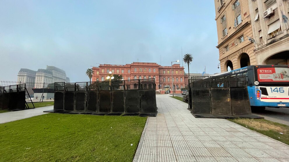 “Por ahora lo vemos tranquilo, pero estamos preparados ante cualquier directiva del Ministerio”, comentaba a este cronista un oficial de Gendarmería que estaba apostado sobre la Casa Rosada. Las inmediaciones de la Casa Rosada ya estaban valladas parcialmente desde las primeras horas de la mañana, mientras que en el centro de la Plaza de Mayo se estaba armando un escenario donde iban a hablar los organizadores del acto.