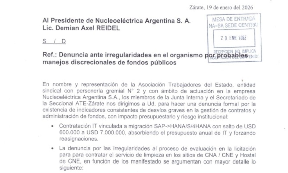 Tal y como lo adelantó Infobae, el Comité de Integridad trató la denuncia que hizo ATE-Zárate que acusó sobreprecios en una contratación de IT para una migración de un software de planificación de recursos empresariales que tuvo un salto de USD 600.000 a USD 7.000.000; es decir, un 1066,7% sobre el presupuesto original.